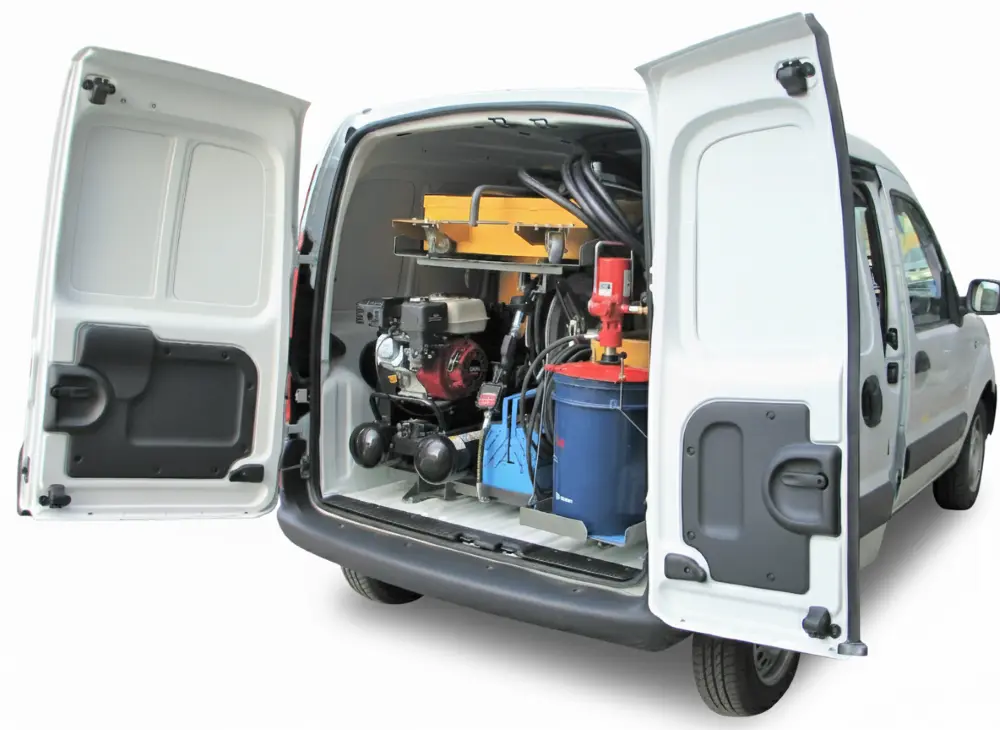 Praticidade: Suporte no chassi para transporte da bandeja de coleta de óleo usado.